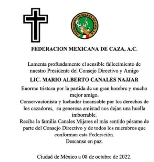 Najjar era el presidente del consejo directivo de la Federación Mexicana de Caza A.C. desde el 11 de abril de 2018. Daba conferencias sobre turismo y caza, conservacionismo y derechos de los cazadores. «Era un gran cazador, siempre buscando grandes trofeos alrededor del mundo«, sostuvo la Federación que lo despidió con un mensaje en sus redes sociales.
