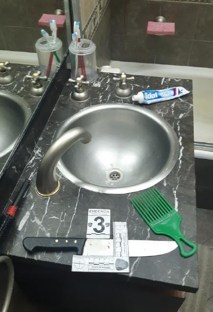 Al llegar la policía al lugar, comenzó el trabajo de los peritos. En el cuchillo con el que cortaron al hombre, los científicos encontraron una huella digital. De ahí salió el primer dato de la investigación que termino exitosamente.