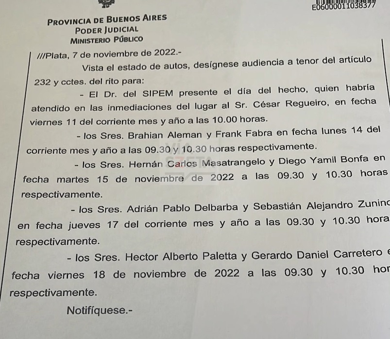 Las imputaciones no fueron la única novedad en la causa que investiga el asesinato del hincha de Gimnasia. Al mismo tiempo, se programaron varias jornadas de citación de testigos. Entre otros, declararán los jugadores Frank Fabbra de Boca y Brahián Alemán, capitán de Gimnasia. También deberán prestar testimonio la terna arbitral, árbitro y jueces de línea, y todos los integrantes del VAR de aquel primer partido.