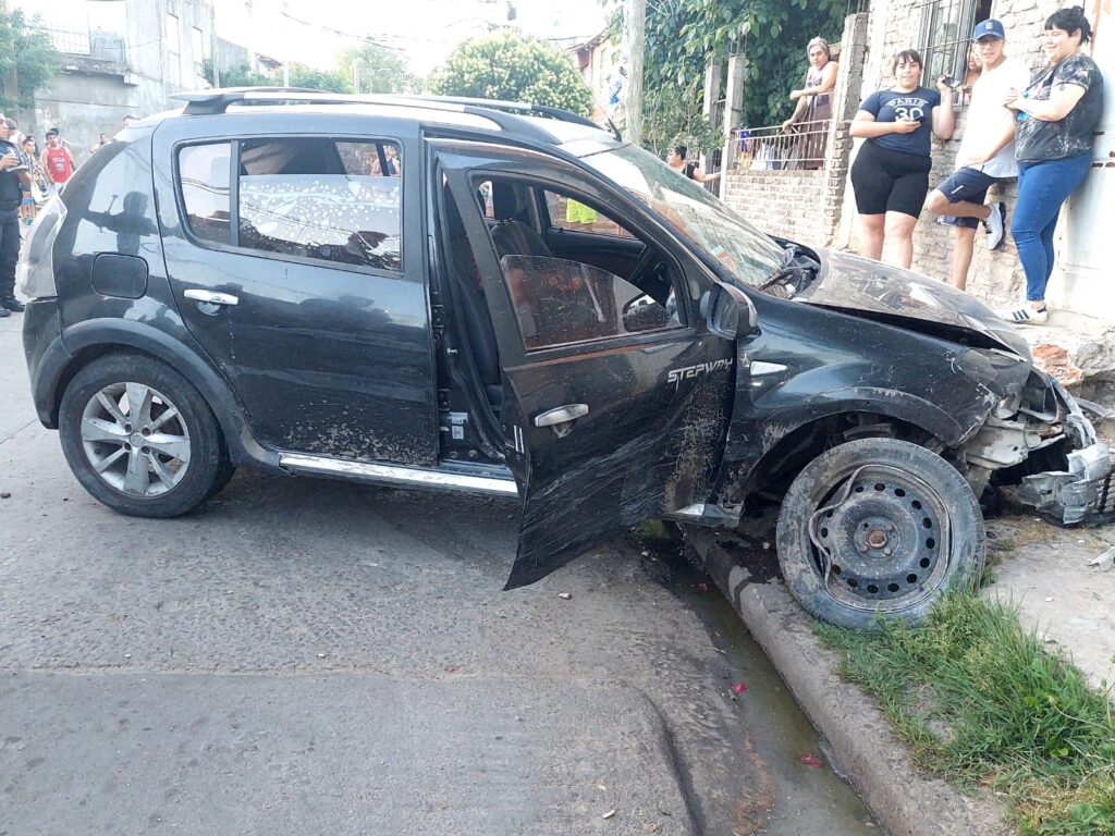 Por su parte la Sandero siguió escapando unos metros más. Al llegar a las calles Lavarden y Campana chocaron contra una pared.