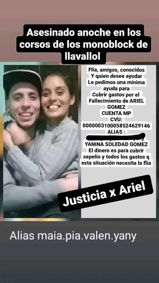 «Ariel estaba colaborando vendiendo con la murga hasta que un delincuente enfermo comenzó a tirar tiros a todos lados , llevándose su vida e hiriendo 6 personas más todas inocentes», dice el mensaje que termina con un desesperado pedido de justicia.