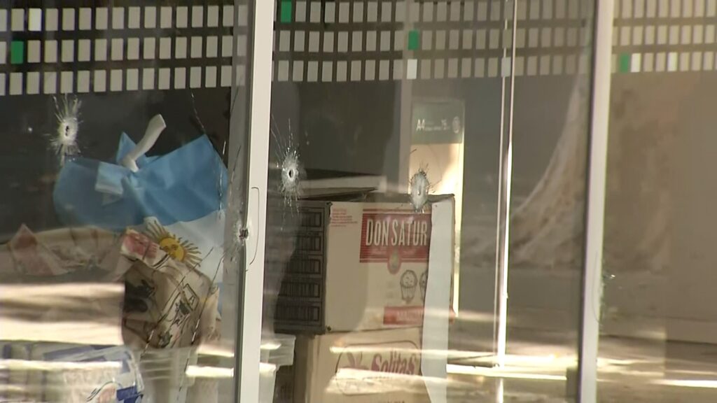 El violento episodio ocurrió cerca de las 3 cuando al menos dos personas a bordo de una moto violentaron el frente del local. Todas las balas impactaron contra las persianas.