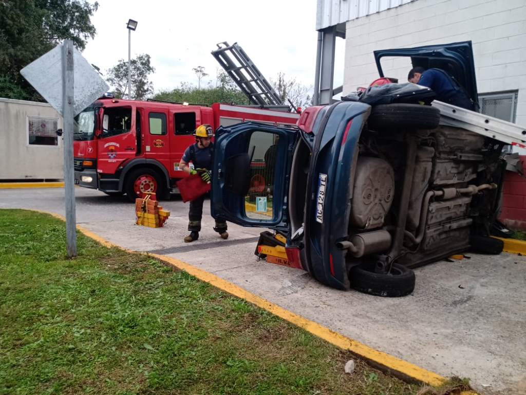 Una vecina de 63 años fue rescatada por los equipos de Defensa Civil y Bomberos Voluntarios de Lanús luego de quedar atrapada dentro de su vehículo durante una prueba de manejo en la Sede de Licencias del Municipio. El incidente ocurrió cuando la mujer, en el marco del examen obligatorio, impactó contra un cantero y una luminaria, resultando en su volcamiento.