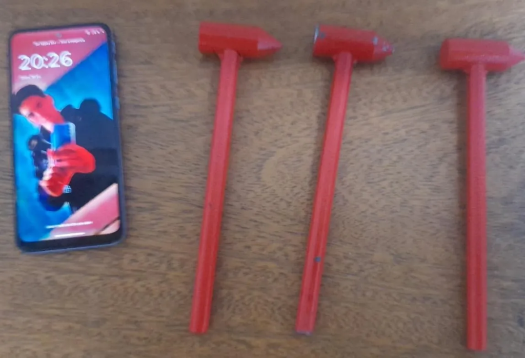 Al requisarlos, les hallaron los tres martillos rojos para emergencias y el teléfono que le habían robado a la víctima.