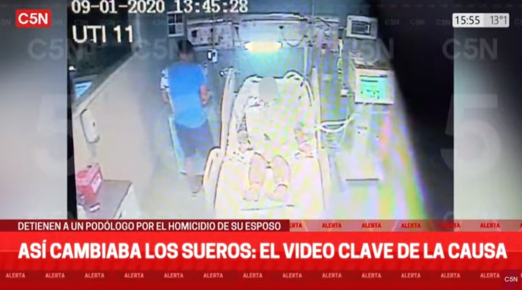 Por otro lado, los detectives obtuvieron un informe importante de las cámaras de seguridad del hospital, en las que se observa como en los horarios de visita, el sospechoso se quedaba solo con su pareja y manipulaba los sueros, al colocar sustancias extrañas con jeringas o cambiarlos por otros que traía desde el exterior del centro de salud.