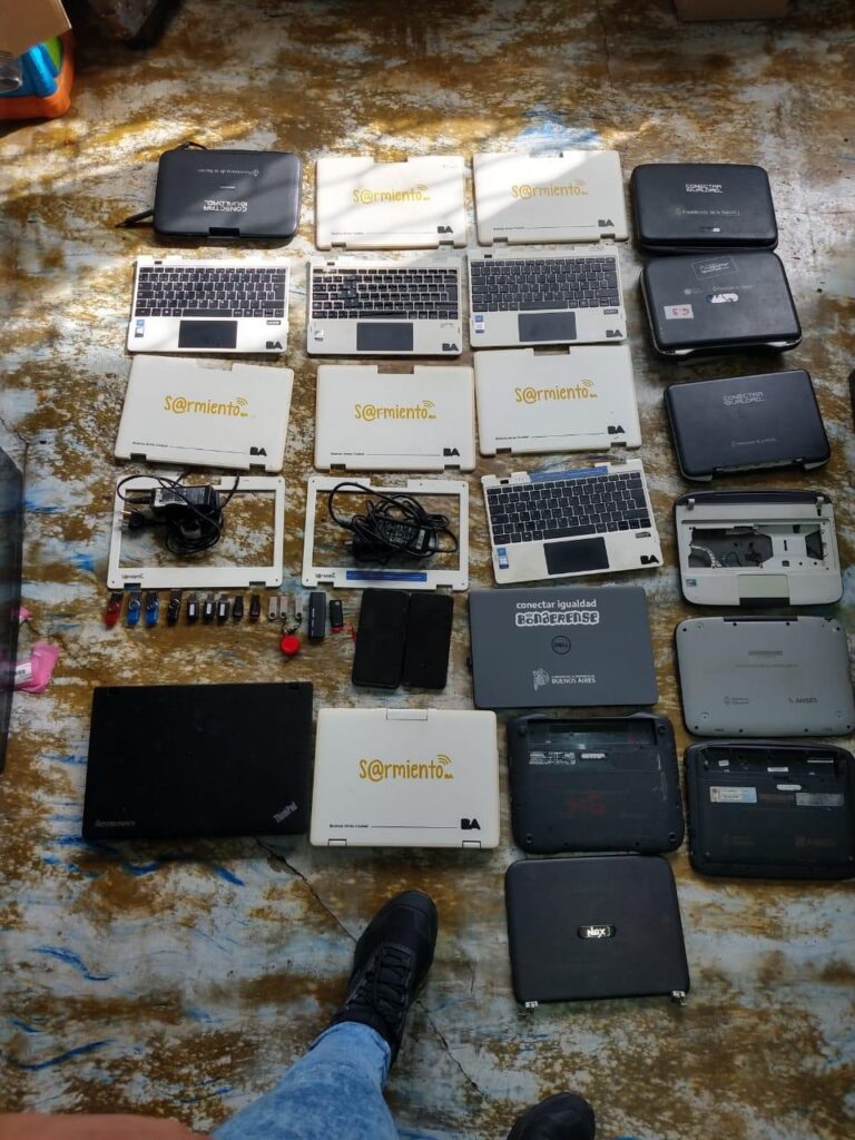 Además, se recuperaron 376 computadoras, 102 discos rígidos, 120 teclados, 86 baterías, 81 fuentes de alimentación, 87 placas, 68 teléfonos celulares, 66 placas de memoria RAM, 51 pen drives, 38 cargadores, 5 tablets, 5 CPU, monitores y mouses, entre otros elementos de interés para la causal.