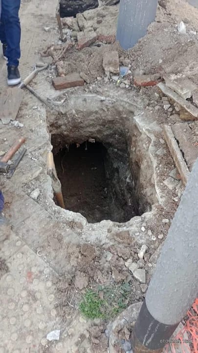 Los hombres tenían la ropa de trabajo y hasta pusieron conos para delimitar la supuesta reparación.