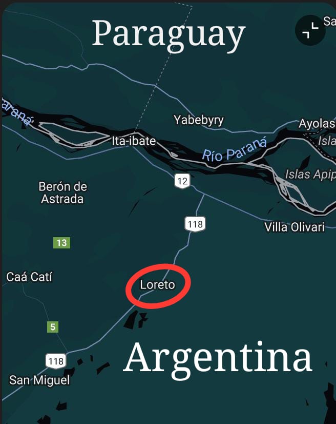 Loreto de esa ciudad ubicada sobre la ruta nacional 118 a 650 kilómetros de Paraná y a menos de 200 km de Apóstoles y a 53 kilómetros de la frontera con Paraguay.