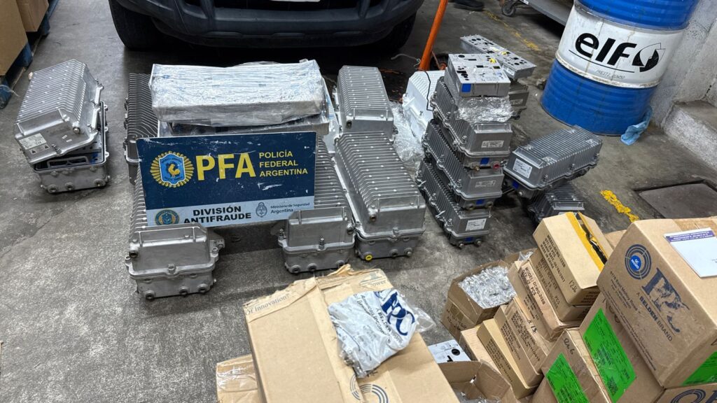 Entre lo recuperado había 1139 bobinas y rollos de cable coaxil; 8 nodos ópticos; 4 carcazas de nodos ópticos; 8 housing de equipo dual; 5 módems; 12 bolsas conectores; 5 módulos duales; 1 caja de distribución de fibra óptica; dos computadores y un celular.