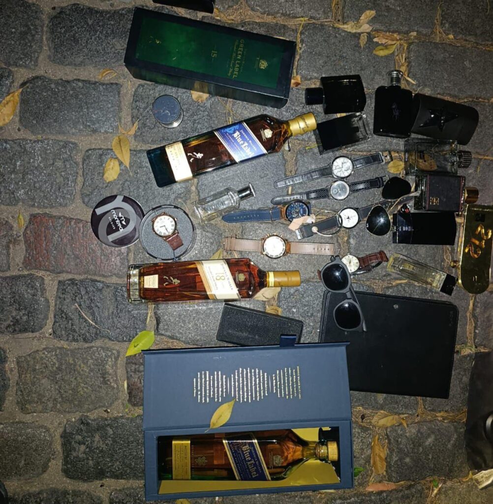 También hallaron gorras, dos notebooks, una consola de videojuegos con dos joysticks, un cargador de netbook, relojes, perfumes, botellas de whisky, anteojos de sol, jeans, bolsos, remeras, camperas, dos pares de zapatillas, un celular de alta gama, una tablet, documentación del auto robado, un estuche de auriculares, otros dos cargadores y cables.