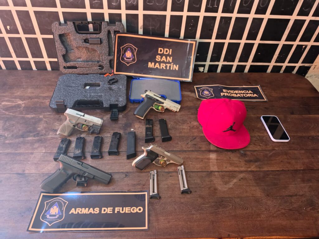 Ocultas en la habitación donde dormía, le secuestraron una pistola Glock modelo 22 calibre .40, con 15 municiones, una Bersa calibre .22 con tres cargadores, otra Bersa pero TPR9 calibre 9 milímetros, con dos cargadores, y una pistola Taurus modelo G3C calibre 9 mm, con tres cargadores.